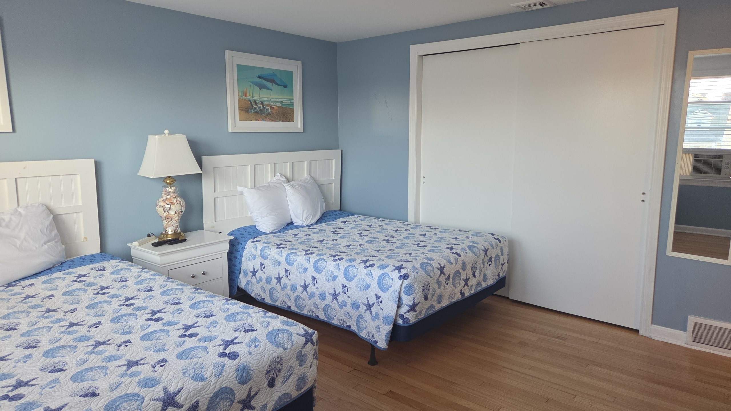Perfect for families or small groups, our Standard Double Room comfortably accommodates up to four guests with two plush double beds. Whether you're winding down after a day at the beach or getting ready for a night on the boardwalk, this room has everything you need for a relaxing stay—flat-screen TV, complimentary Wi-Fi, and a mini fridge to keep your snacks and drinks cool.